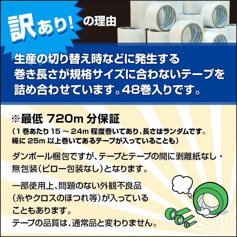 【アウトレット品】巻き長さが不揃い 塗装・建築養生用 Y-09-CL 50mm幅 (クリア・半透明) 48巻入りについてつぶやく