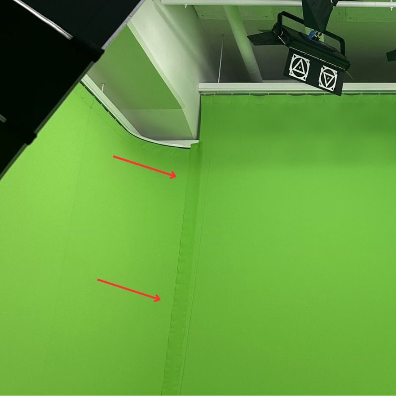 クロマキー撮影のカーペットの固定、カーテンの幅継ぎやミシン目を隠す